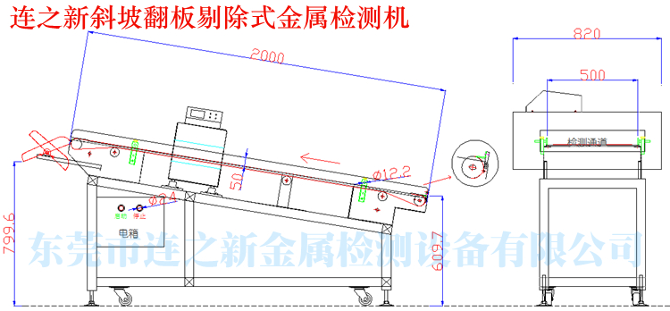 斜坡翻板式食品金屬檢測機是一款數(shù)字式金屬檢測機,能檢測所有的金屬異物,圖中金檢機是為一家花生類休閑食品生產(chǎn)廠家設(shè)計制作的金屬檢測控制單元,用于銜接于炒鍋出冷卻臺下滑進入此金屬檢測機進行金屬異物管控,節(jié)省人力提升產(chǎn)品質(zhì)量。