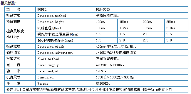 5.具有防漏檢功能。當有多個金屬信號通過時,儀器會自動檢測信號次數,執行機構在動作時不會產生遺漏。具有輸送帶防止跑偏裝置。